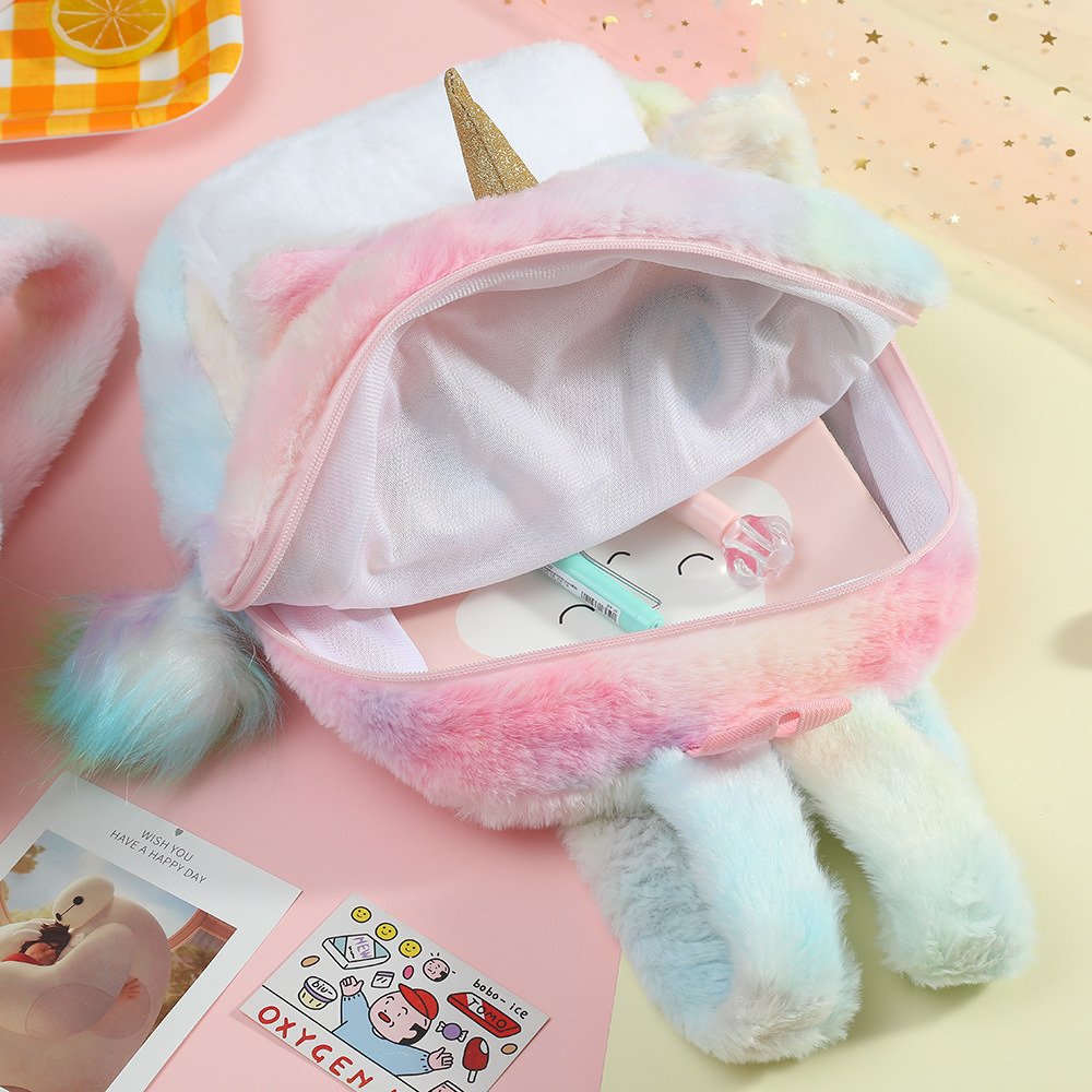 Home > Girls Cute Plush Unicorn Backpack Fluffy Cartoon Schoolbags Birthday Gifts
