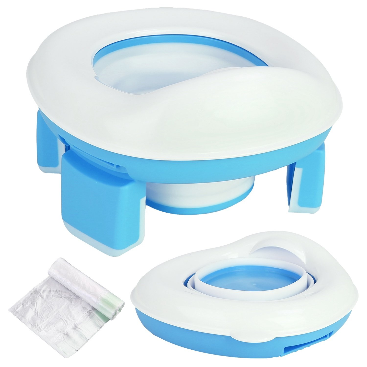 *Travel-Friendly Potty Training Toilet*:Children have difficulty in controlling urgent potty demands during outdoor activities. Our travel-friendly potty toilet is your perfect solution to solve this awkward and anxious situation on the go. Package includes 1 roll of disposable potty bags(20Pcs),eliminating the trouble of cleaning this portable toddler toilet while lack of water.